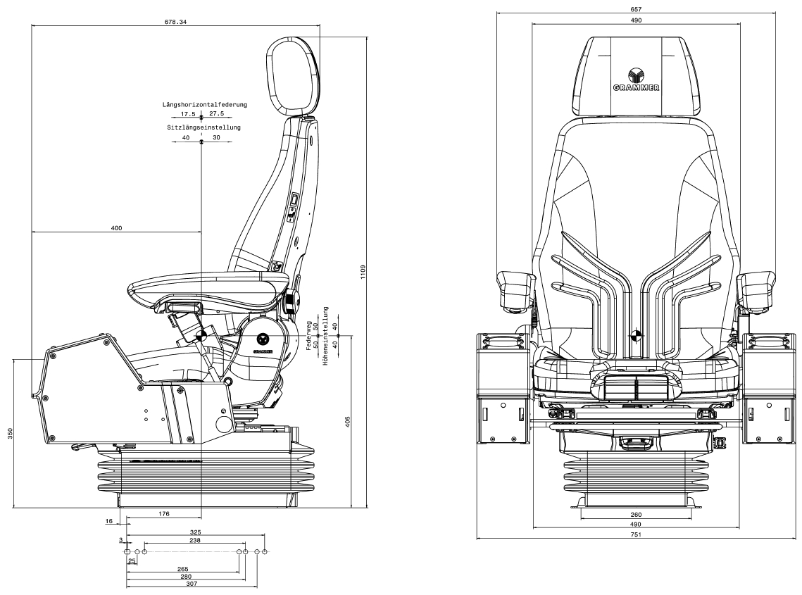Der Superkomfortsitz für große Baumaschinen. Die pneumatische Federung mit APS (Automatisches Positioniersystem) gewährleistet in jeder Situation den Kontakt zu den Pedalen. Die Längshorizontalfederung reduziert horizontale Schwingungen in Fahrtrichtung. Das passive Klimasystem (Aktivkohleschicht) verbessert das Sitzklima. Durch eine ergonomisch optimale Benutzerführung erleben und nutzen Sie echten Bedienkomfort. Auf Wunsch auch mit Steuerhebelträgern ausrüstbar. |